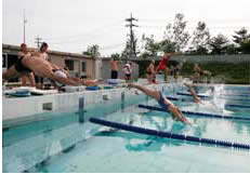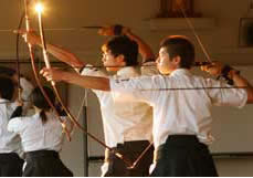 | 水泳部水泳大会の様子です | 弓道部での練習です | ||